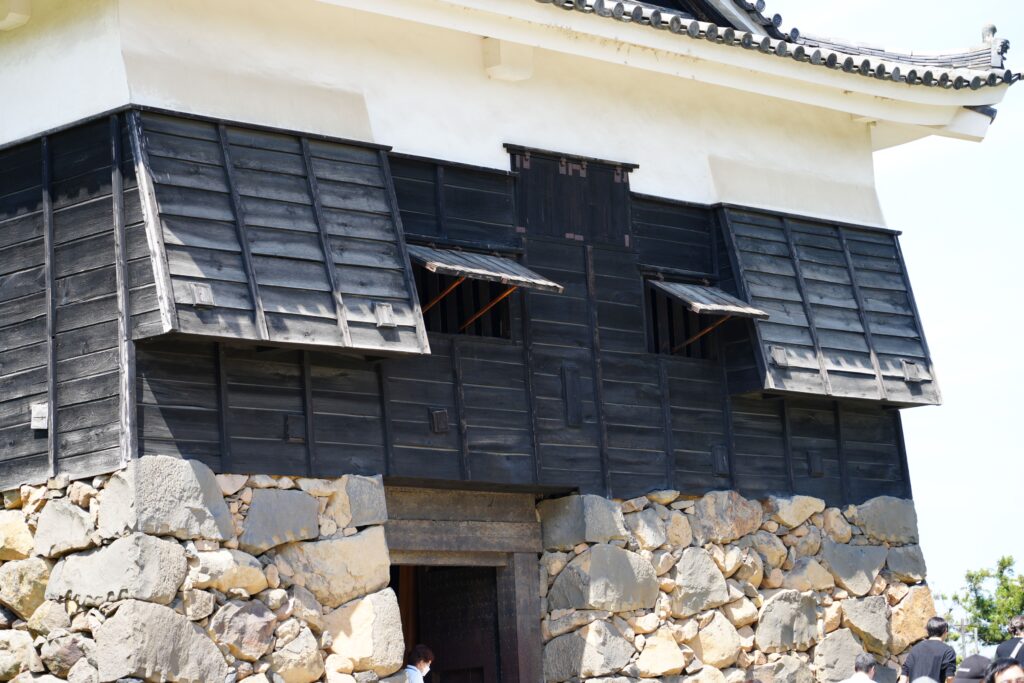 松江城天守の最大の魅力は、現存12天守の中でも屈指の「実戦的構造」を残す点です。松江城は江戸初期に築かれた城でありながら、まだ戦乱の可能性が残る時代背景のもとで建てられたため、防御機能が随所に見られます。たとえば、天守の2階から1階屋根を貫くように設けられた「石落とし」は8か所もあり、敵兵が石垣を登ってきた際に石や熱湯を落として撃退するための設備です。また、鉄砲狭間や矢狭間が各階の四方に配置され、攻撃方向に応じて使い分けられるよう工夫されています。これらの構造は、桃山期の城郭に見られる実戦的な特徴を色濃く残しており、松江城が「武の城」であったことを物語っています。