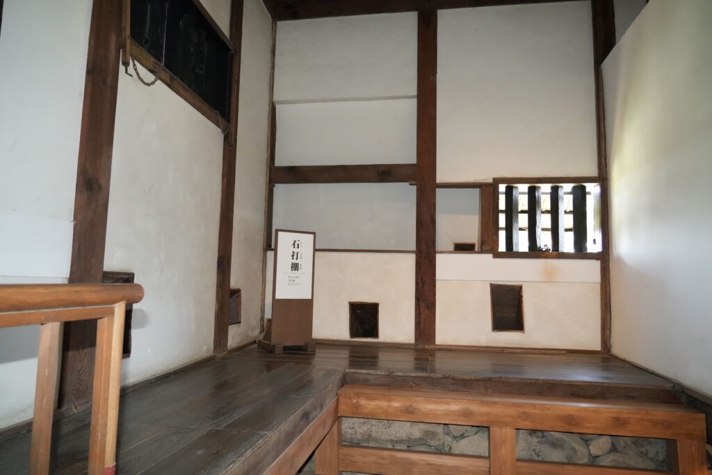 附櫓内部の「石打棚」です。
