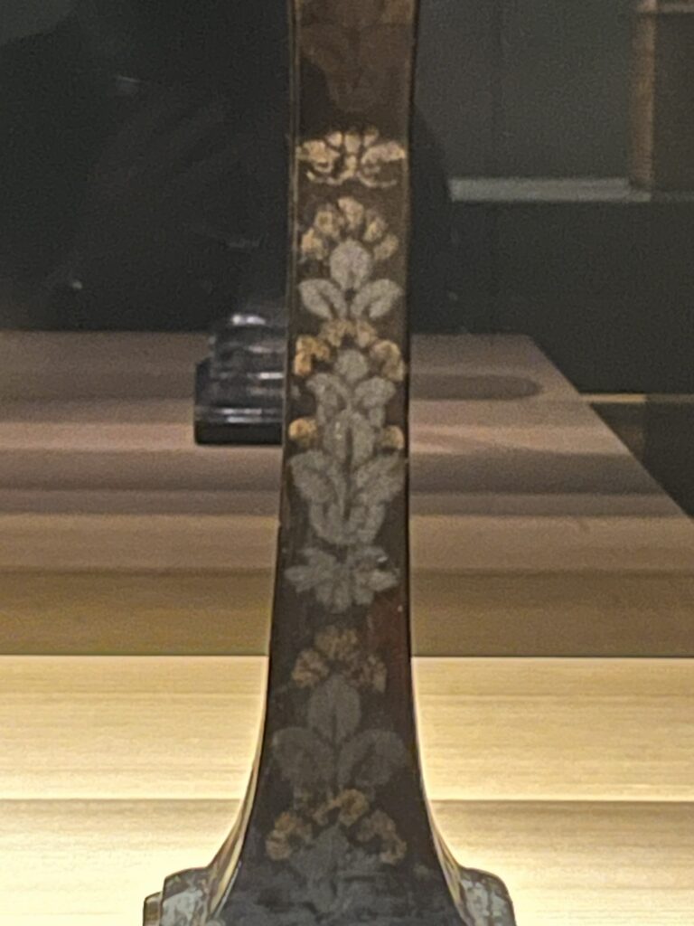 本作の最大の見所は、9世紀の蒔絵作品として唯一現存する点にあります。奈良時代の蒔絵と10世紀以降の蒔絵をつなぐ重要な作例であり、蒔絵史の空白を埋める資料として極めて高い価値を持ちます。金粉は後世の作品よりも粒が大きく、錫は粉状ではなく塗り重ねたように見えるなど、初期蒔絵の技法的特徴が明確に示されています。
