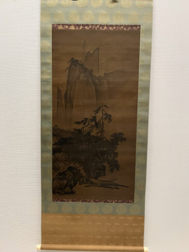 「風雨山水図」の最大の見所は、風雨という一瞬の自然現象を、墨の濃淡と筆致のみで生き生きと表現している点です。画面には強風にしなる樹木、斜めに降りつける雨脚、波立つ水面などが描かれ、観る者はまるで嵐の中に立っているかのような臨場感を味わえます。馬遠派の特徴である大胆な構図と余白の巧みな扱いも顕著で、画面の一部に主題を寄せる「片隅構図」が、風雨の緊張感と空間の広がりを同時に生み出しています。また、淡い彩色をわずかに加えることで、墨一色では表現しきれない深みと自然の息づかいが感じられる点も魅力です。さらに、本作は馬遠の真筆か、あるいは後代の馬遠派による作かについて議論が続いており、その点も研究対象として興味深い特徴となっています。南宋画の精髄を示す本図は、静嘉堂文庫の名品の中でも特に人気が高く、公開のたびに多くの鑑賞者を魅了し続けています。