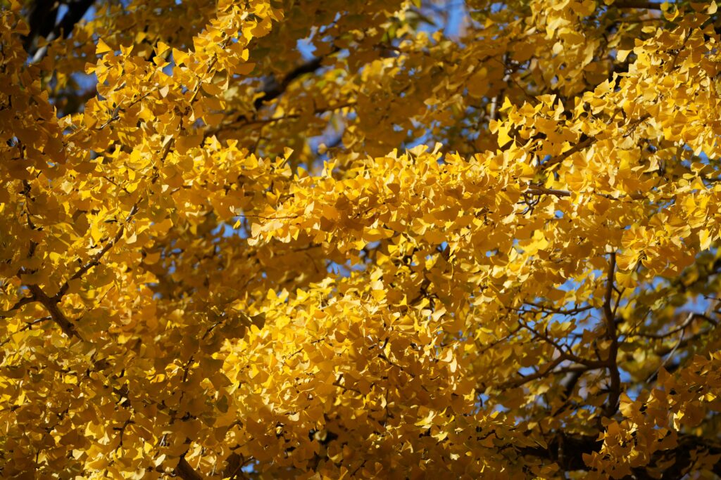 着いたときは小雨がぱらついていたのですが、歴史館を出る頃にはすっかり晴れて、イチョウがきれいでした。